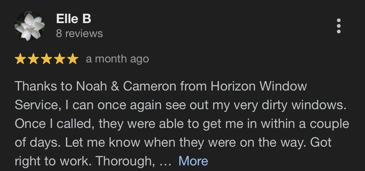 IF YOUR A PREVIOUS CUSTOMER OF HORIZON VIEW, LEAVE US A REVIEW AND WE’LL MAKE A SPOT FOR YOUR REVIEW ON THIS PAGE!